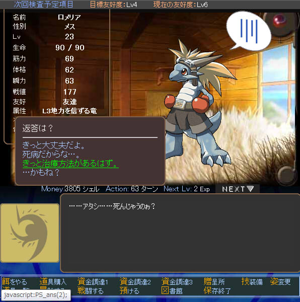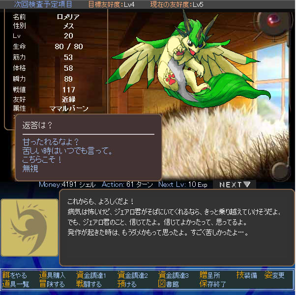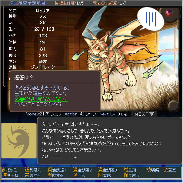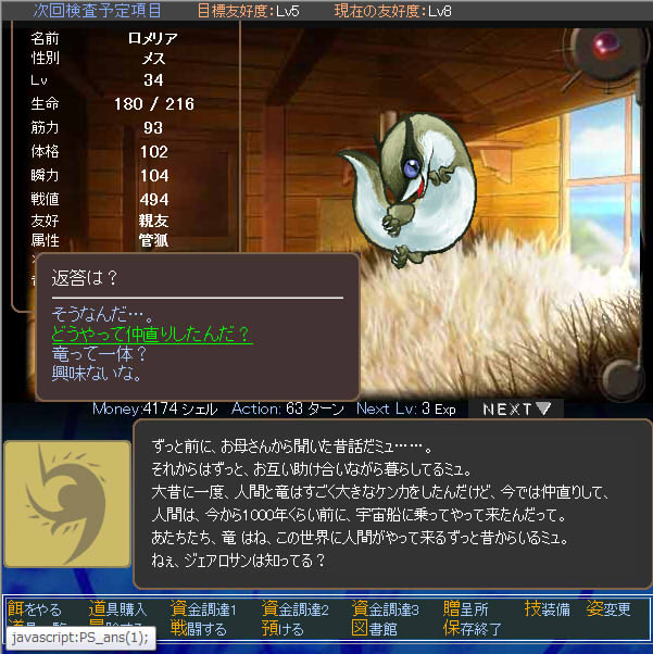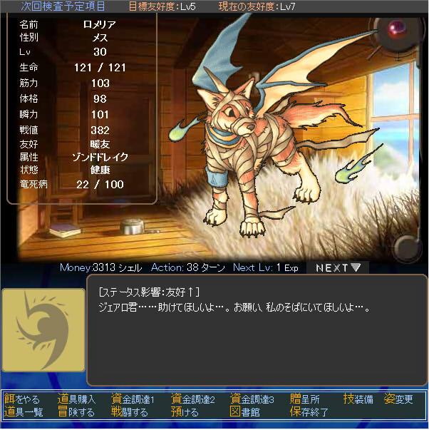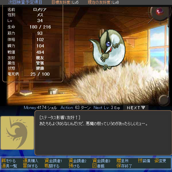 友好度は「友達」、属性は「Lv2地を歩む者」のようだ。