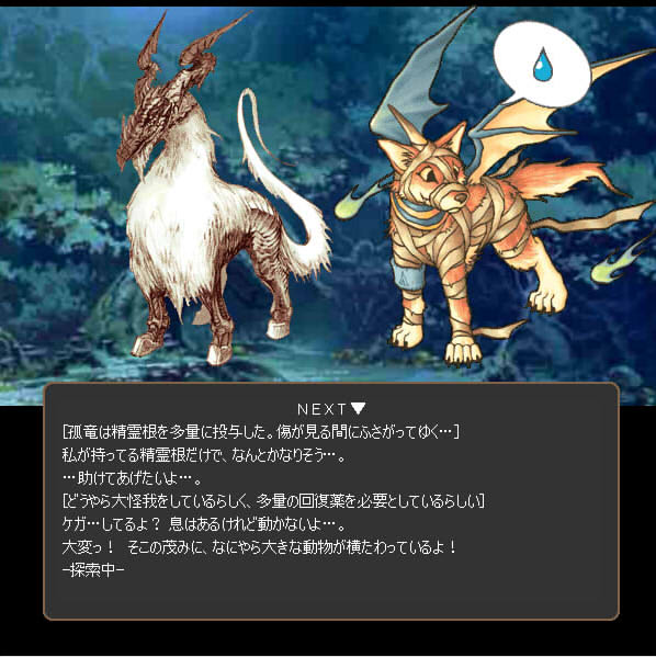 ダンジョンで会う他の竜にシェルをあげるとアイテムをくれるんだけど、たまに不機嫌なやつが攻撃してきて致命傷になるという…。
