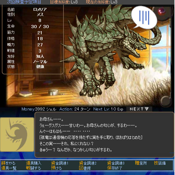 このゲームは自分が受験期にやっていたのですが、勉強に勤しんでいる間はパソコンに触れることが全くと言っていいほど無く、未クリアのまま仔竜を預けていたは良いものの、受験が終わってからゲームを再開したら預かり期限をとっくに過ぎていて里親の資格を剥奪されていました。